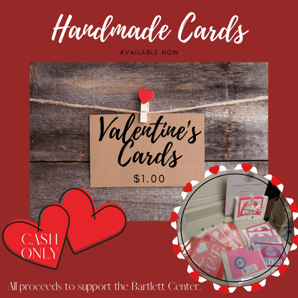 Valentine’s Cards Posted on January 26, 2022 by hilliesshop Send someone some love with a beautiful, handmade card assembled for you by the students of Bartlett School. Available for purchase at HHS, City Hall and Bartlett School. Published by hilliesshop View all posts by hilliesshop
