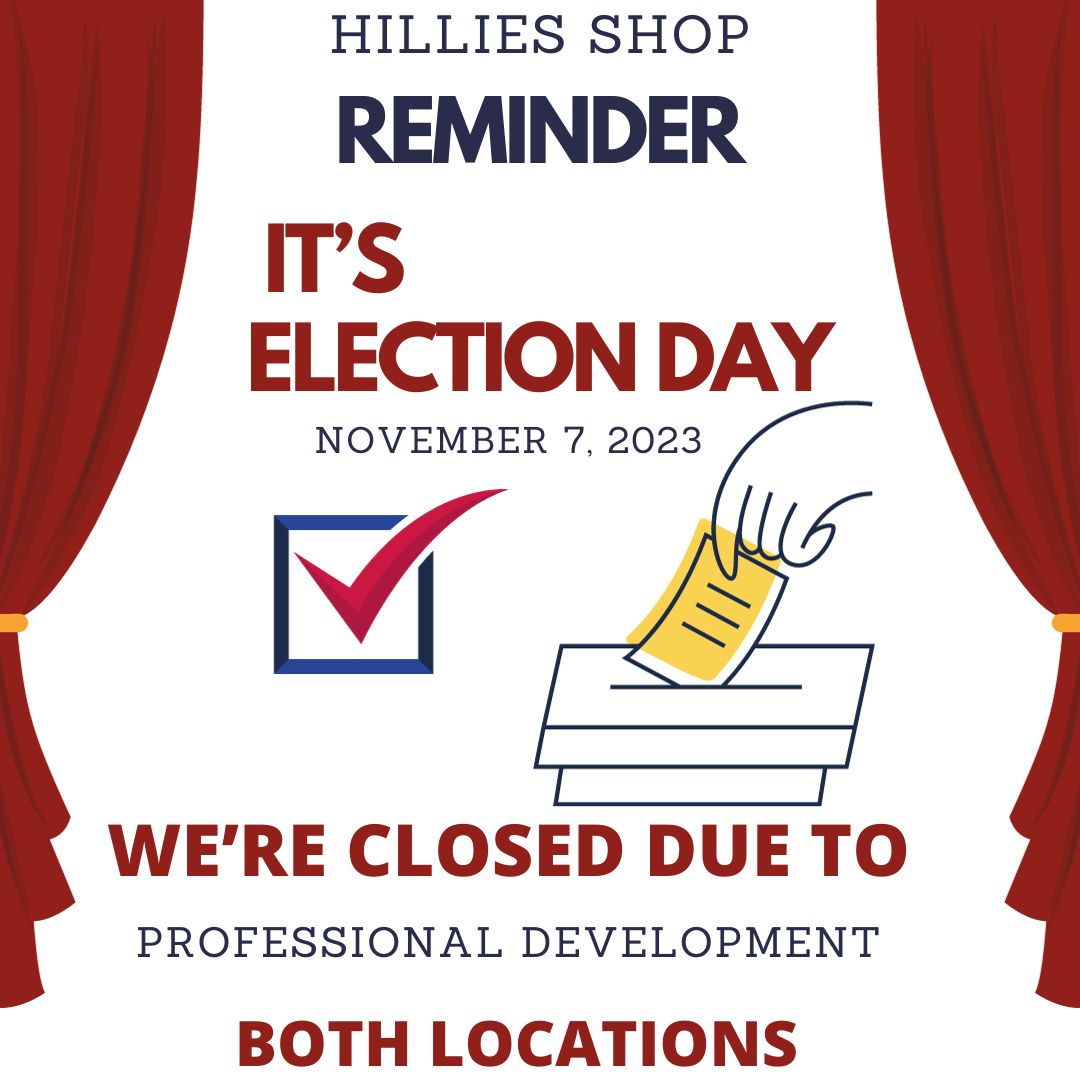 Election DAy: Closed Posted on November 7, 2023 by hilliesshop Published by hilliesshop View all posts by hilliesshop